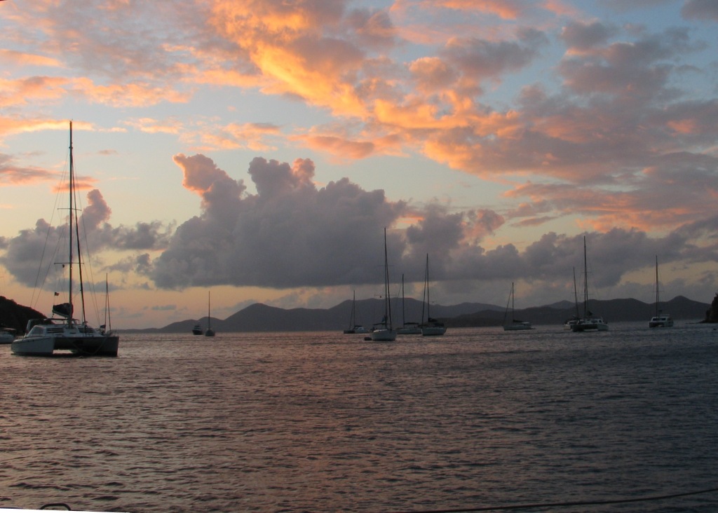 In mid-January we sailed for 6 days accompanied by a long time co-worker for 3 of those days. The weather was beautiful and the wind was full. We have not been back here since 2002 and were a bit rusty for the first day while we regained our sea legs. One highlight of the trip was seeing the green flash for the first time ever just as the sun disappears into the sea -- we were skeptical about its reality having watched for it on many other sundown views. But we both saw it -- it is real!